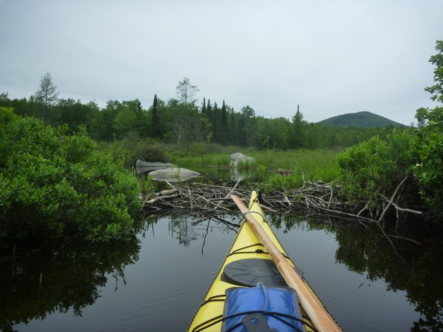 Just west of the dam at the south end is a little boulder strewn creek leading into a boggy area built by some beavers. Their dam is only about 10 inches high at the moment, but it has allowed a whole new area of marsh to exist behind it. They graciously constructed a turn-around pond just below the dam for us to retreat back out onto the main lake without having to back all the way out.